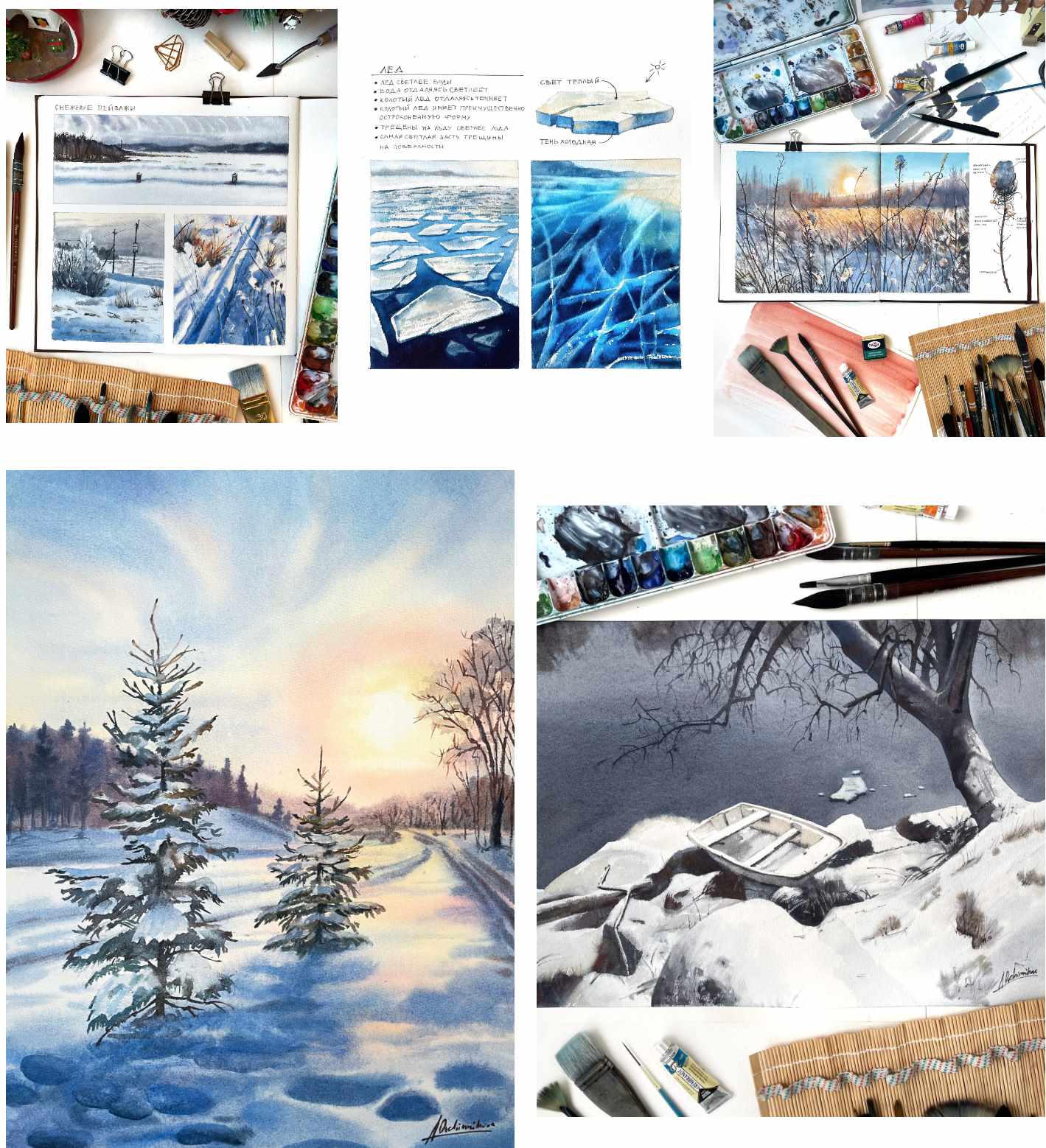 В этом курсе мы нарисуем атмосферные зимние сюжеты, научимся рисовать снег и поймем, как рисовать белое на белом!