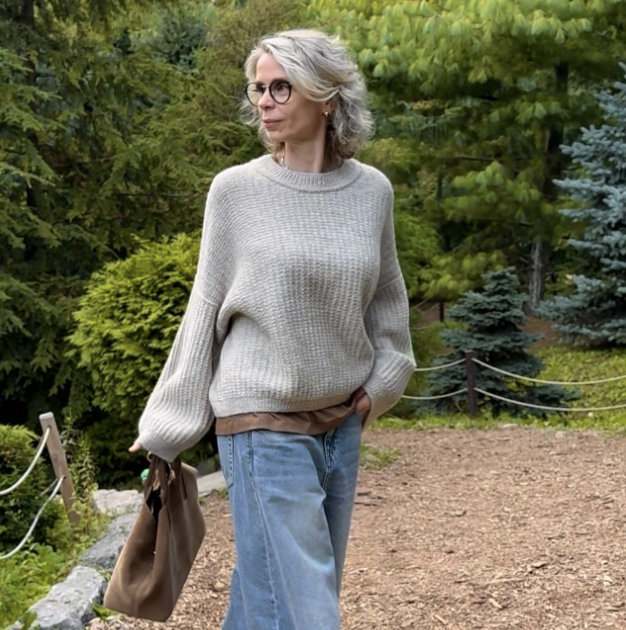 Свитер можно носить как на лицевую так и на изнаночную сторону. Широкий силуэт. Японское плечо. Горловина обработана планкой.